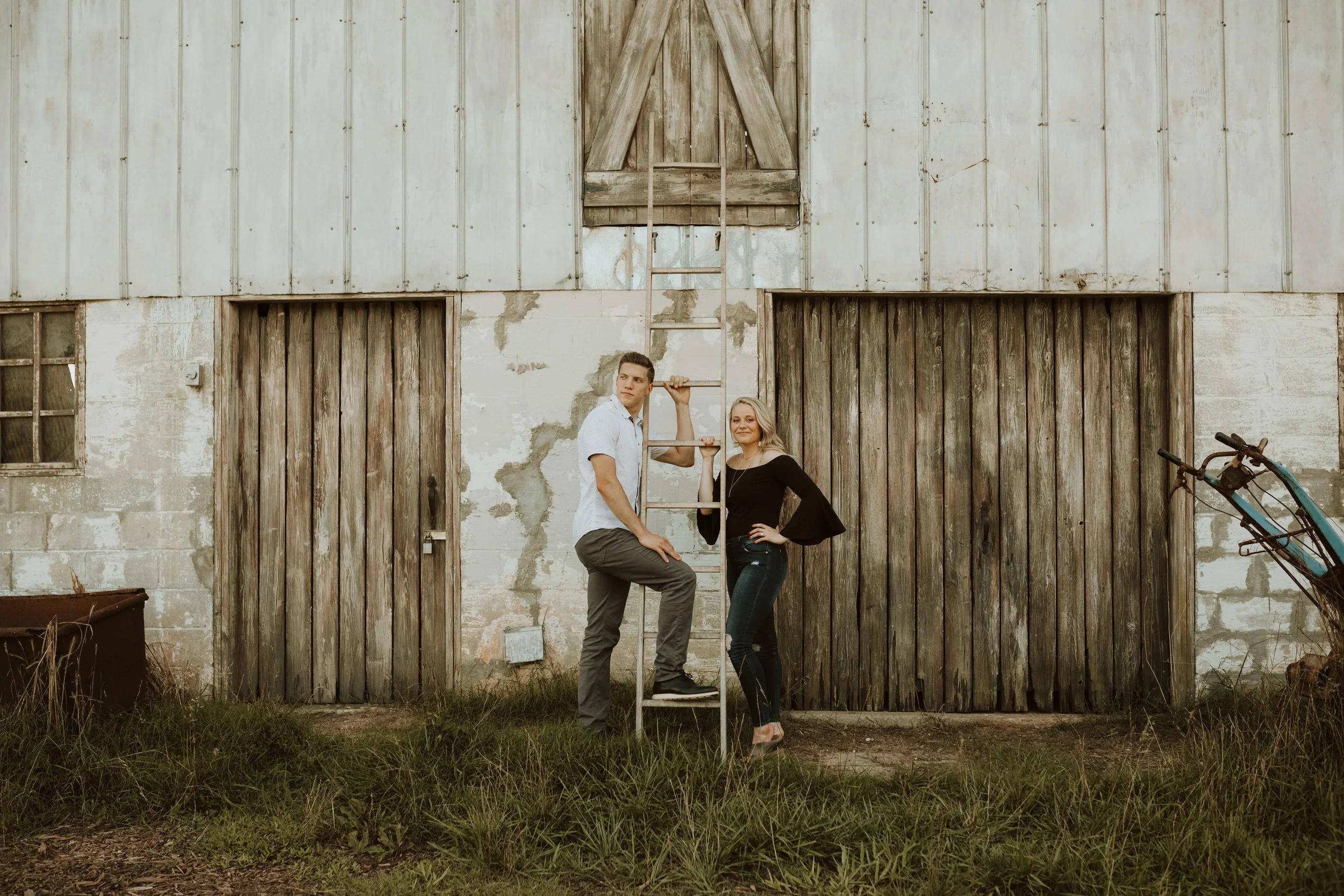 Jake and Marissa were so much fun to hang out with! Jake is a hockey player and travels often. Marissa loves kids and is pursuing her passions. When we arrived at our chosen location, I learned that Jake had grown up on a farm. We saw this tractor in the area we were headed for, and it felt right to use it as a prop. He was exactly in his element! I told them to imagine this was their land. We all got a big kick out of this idea and they played along perfectly. I really loved experiencing their light-hearted playfulness and their kindness toward one another. I also very much enjoyed their outfit choices, and particularly, Marissaβs hat. One of the things I admire most about my job is getting to work with people of all styles, and her chosen accessory paired well with a little editorial vibe for a few images. These two are headed toward a beautiful life together, and will no doubt make gorgeous little babies one day. ;)